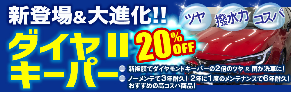 当HPをご覧になったお客様限定で、コーティングの施工料金20%割引を実施中!また、他社にはないお得な特典もお客様にご提供しております。キーパーコーティングをお考えのお客様は、是非、当店にお任せください!