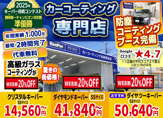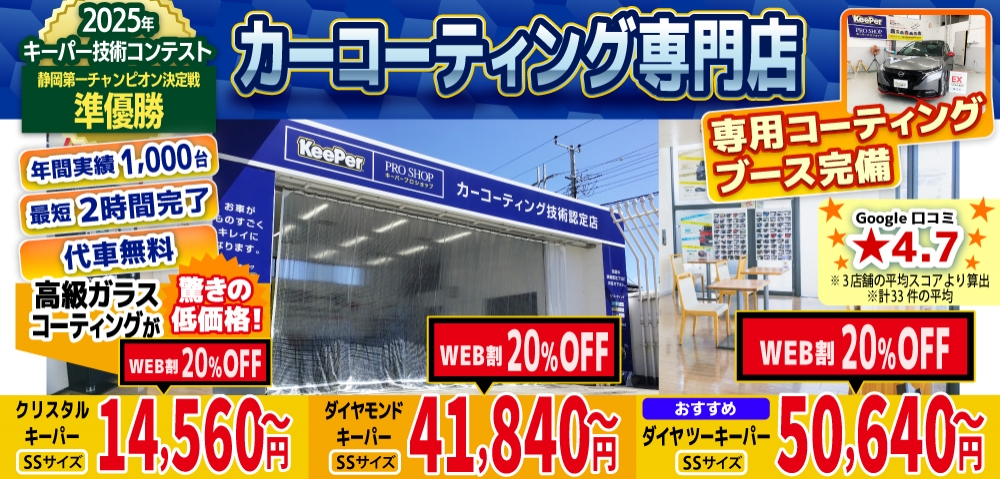 沼津 長泉町 三島で1.4万円のキーパーカーコーティング
